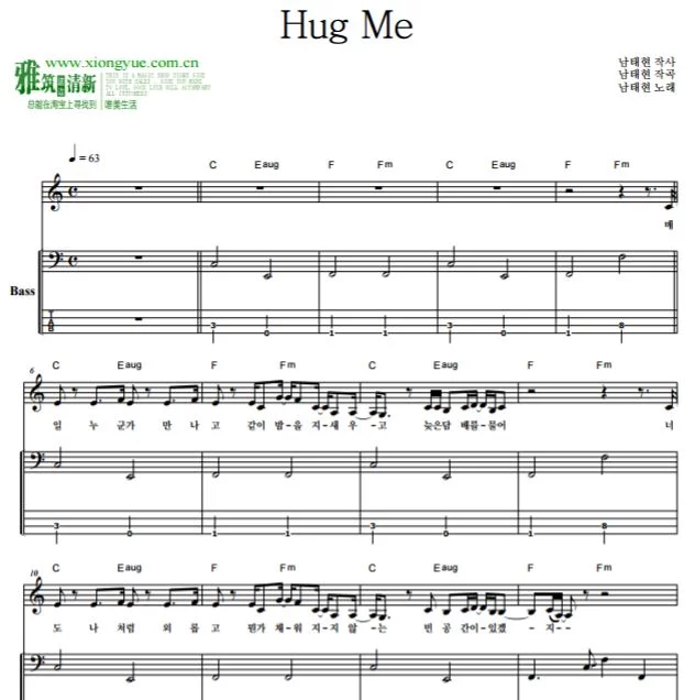 南太铉South Club Hug Me贝司谱 [共4页,高清版PDF文档,发电子邮件