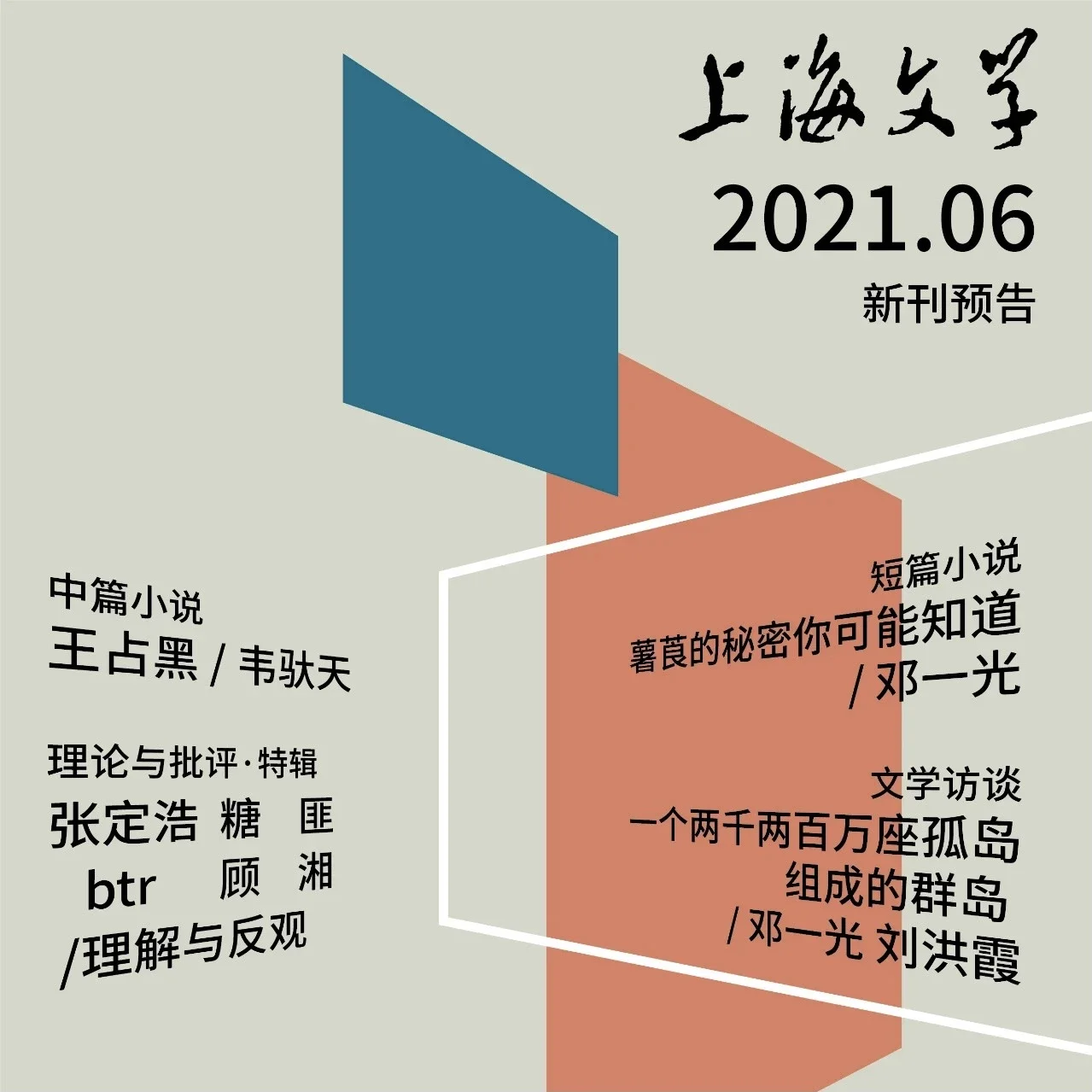 2021年第6期《上海文学》,王占黑、邓一光新作。