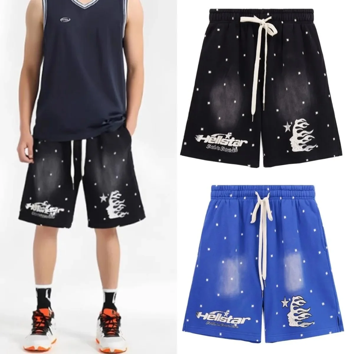 欧美潮牌hellstar高街ins同款复古水洗做旧泥印卫衣短裤潮流男女-1632