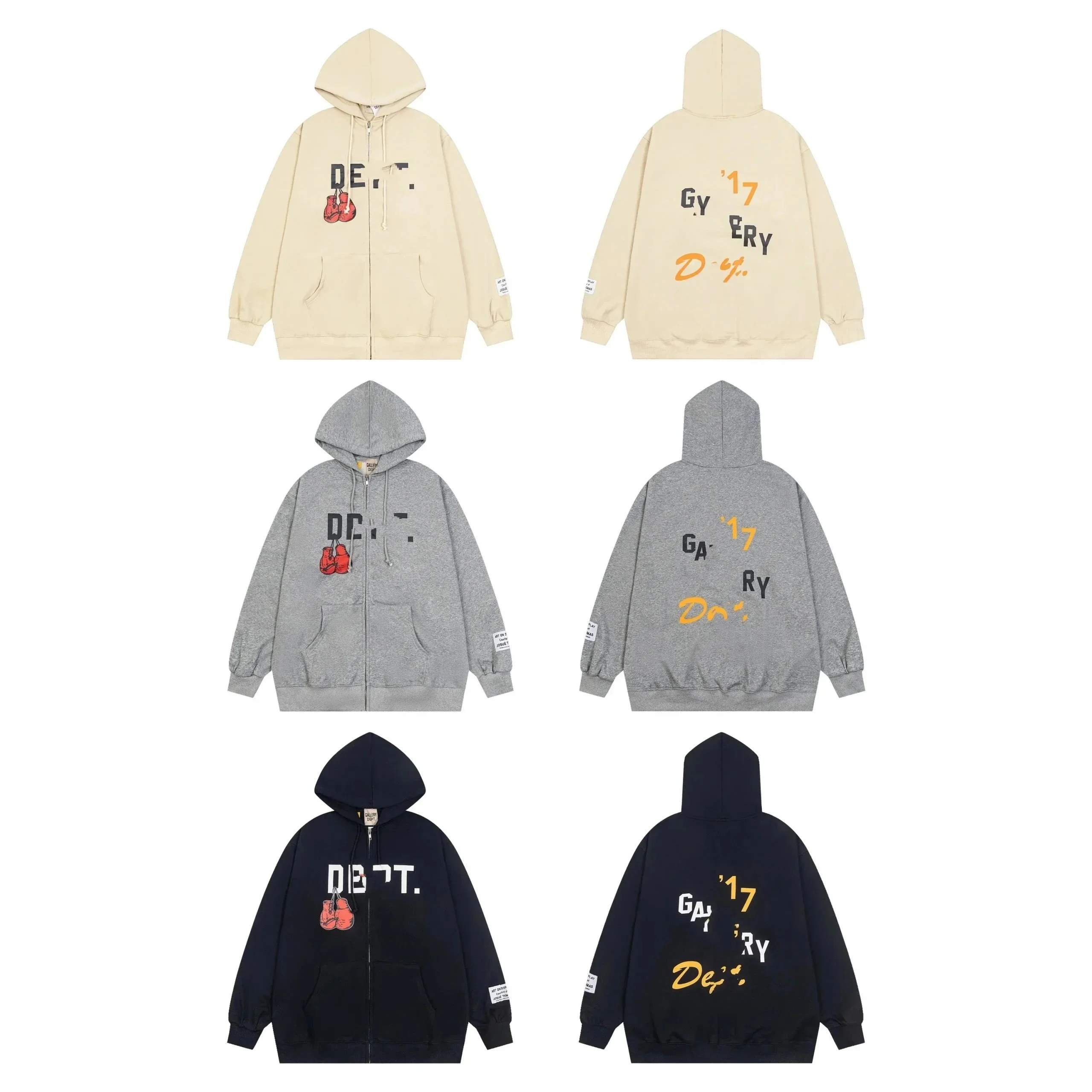 时尚潮牌拳击手套男女同款连帽拉链开衫卫衣外套-2509
