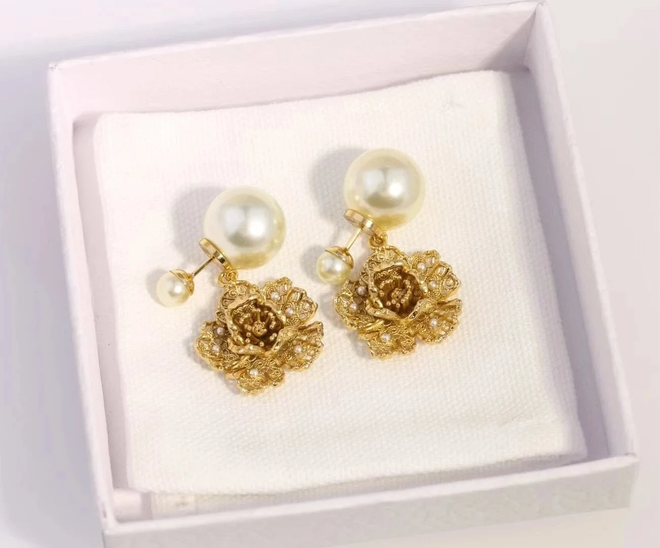 XXX-DIRO大小珠牡丹花珍珠耳环-3771