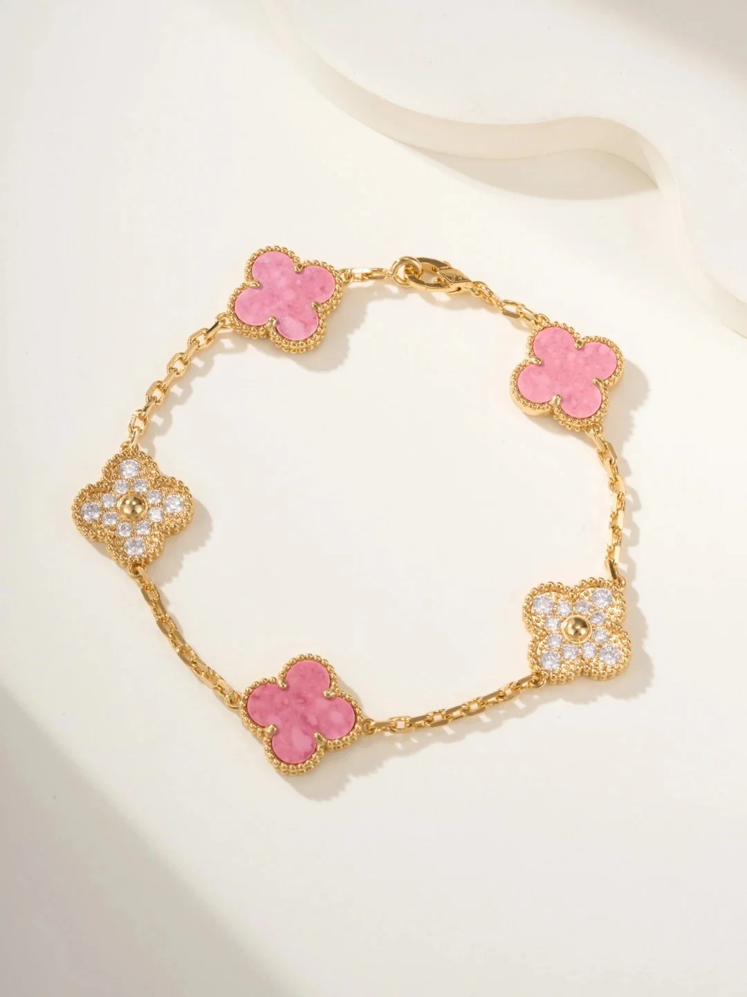 XXX-FKYB粉色间钻蔷薇石五花手链-3903