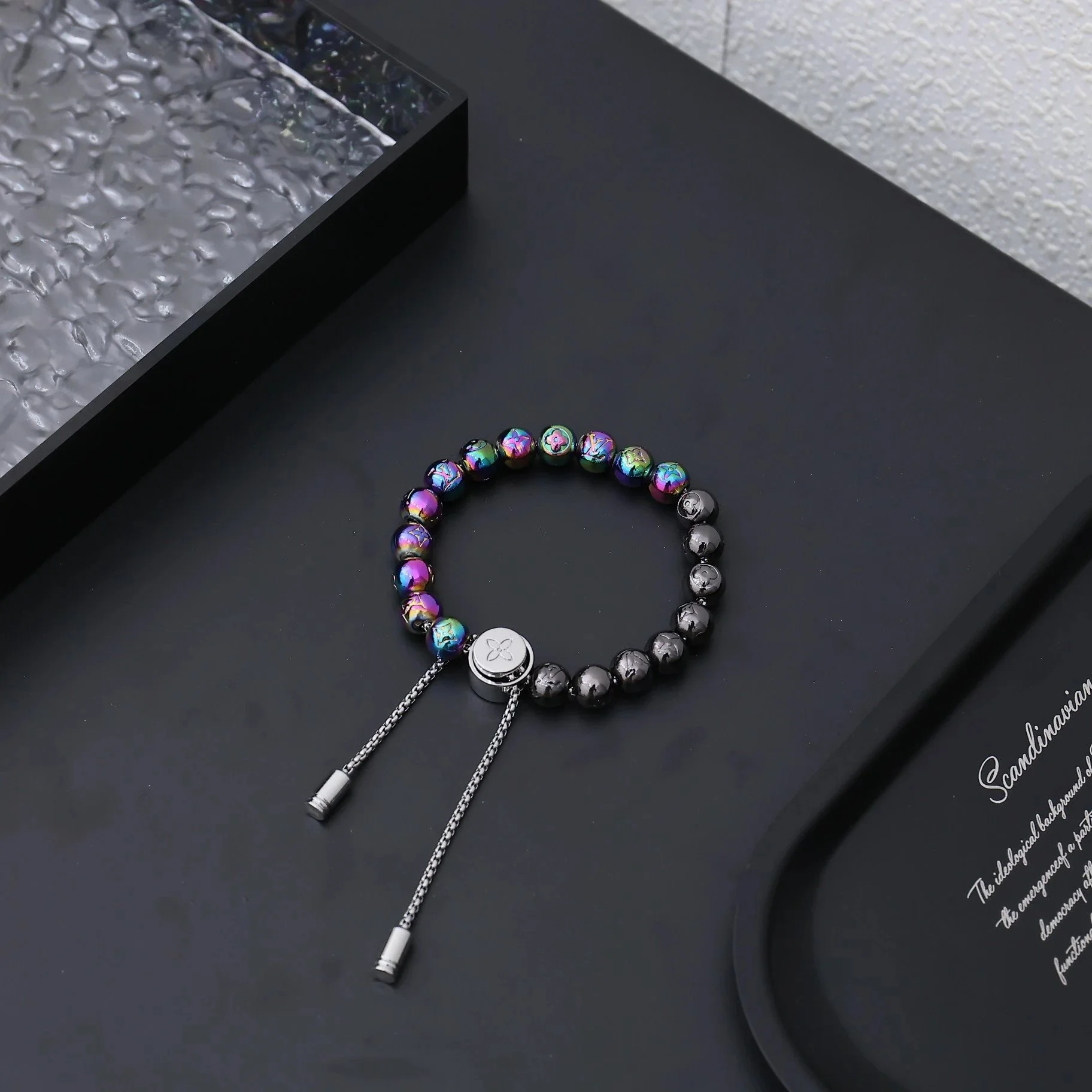 XXX-LYWD金属串珠镂刻字母和花卉七彩珠手链-4047