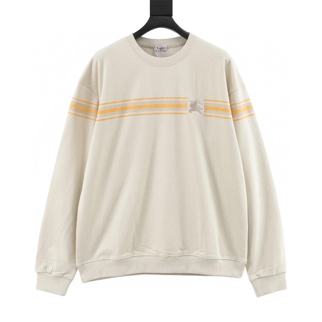 Embroidered couple's striped sweatshirt with warhorse emblem