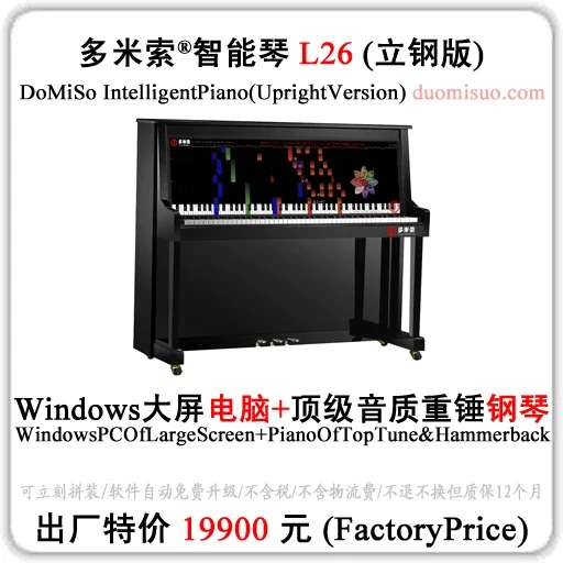 多米索智能琴,李宋博士后发明,详见www.duomisuo.com/DoMiSo_Dn.html 【注意】主要卖的是软件教学系统,购买后,不退不换但质量三包。提前联系多付款10%才可开发票。