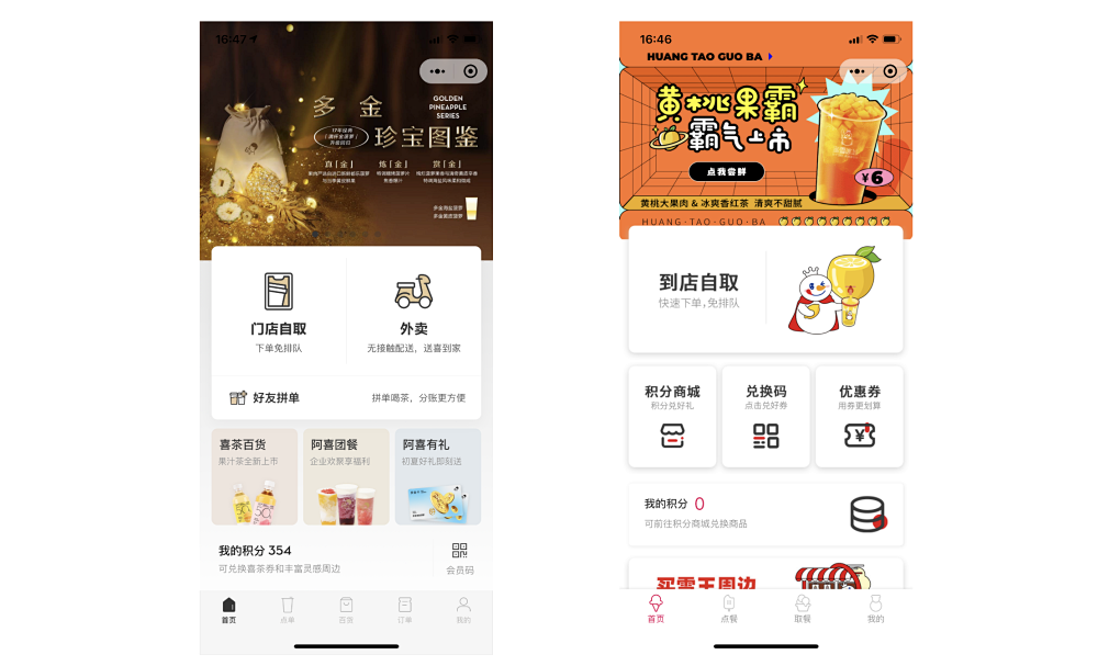 如今,市面上很大一部分的奶茶店都采用点单小程序。无论是定位中高端、价格略高的喜茶,还是价格亲民、凭借“我爱你,你爱我”出圈的蜜雪冰城,都拥有自己的奶茶小程序。而且,这些奶茶小程序大多界面美观、功能齐全。