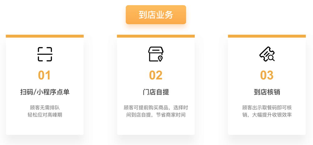 顾客通过扫码或小程序选择想要购买的商品以及自提的时间,到店自提后出示取餐码就可以完成核销,既节省了顾客的时间也提高了商家的收银效率。
