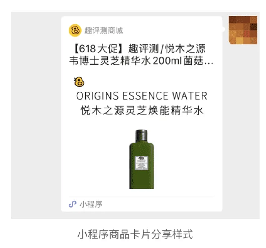 H5是链接,无法展示商品大图;小程序卡片直接展示商品首图,一眼抓到消费者眼球;