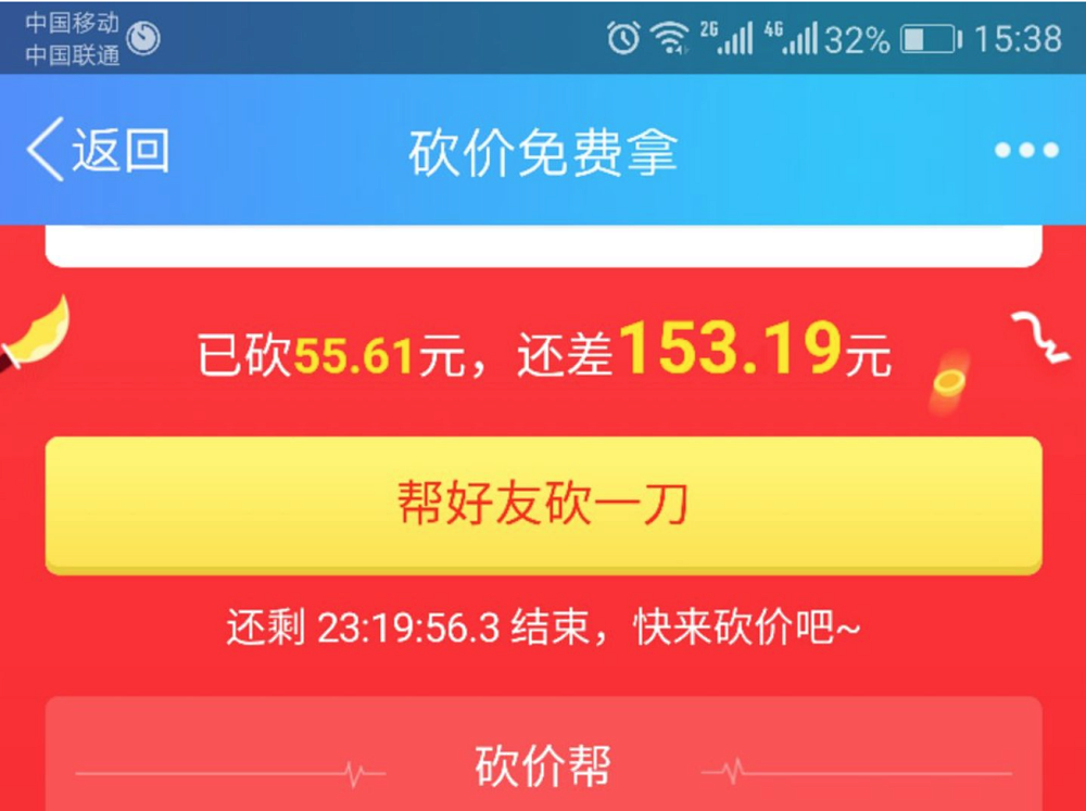 采取砍价方式,就拿行李箱为例吧,即通过砍价来进行免费领取樱桃也是可以的,比如208.8元樱桃,邀请40个好友来帮忙砍价,即可砍价到0元,那么也是可以进行疯狂裂变的。先到先得,送完为止,同样也可以在免费送背包活动后,再搞个砍价活动,进行第二轮裂变。