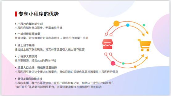 如果有商家想要打造自己的小程序开店的话,可以选择一些靠谱的第三方小程序平台,比如微店。微店商城版为用户提供微店接通小程序商城和视频号的服务。还为用户设计专属小程序,打造私域流量池,通过小程序+视频号,将视频号打造成品牌曝光、引流入口。通过微店接入视频号,可以获得更多的电商能力,对于商家来说,是一个不错的选择。